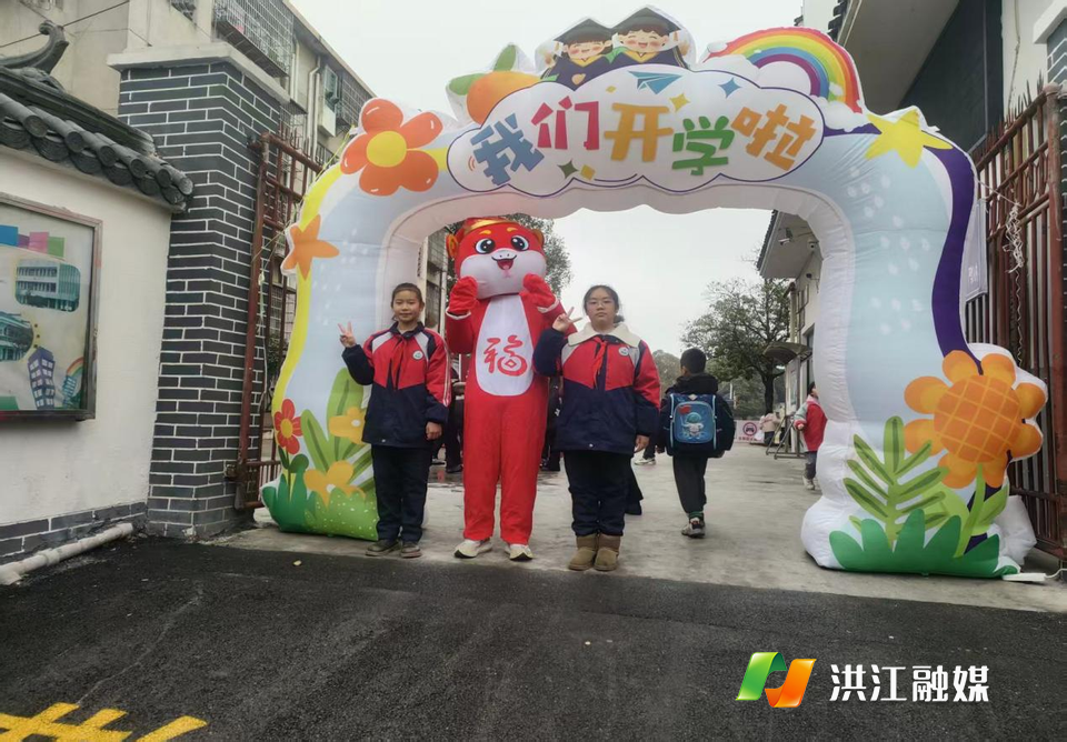 开学当天,校园内外洋溢着欢乐祥和的气氛。校门口,色彩缤纷的“我们开学啦”充气拱门分外醒目。学校精心准备的吉祥物人偶热情迎接同学们的到来,与他们亲切击掌、拥抱互动,并用相机为许多同学定格下了新学期第一张灿烂的笑脸,现场欢声笑语不断。