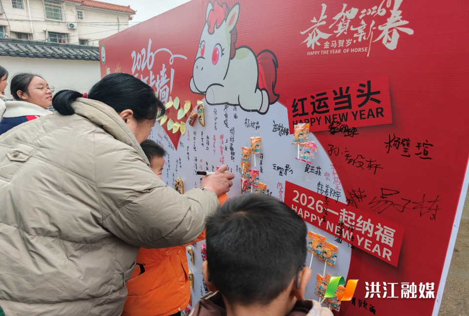 步入校园,一面以“2026心愿墙”为主题的红色展板成为众人瞩目的焦点。展板上,贴满了同学们亲手写下的姓名和新学年愿望,字里行间充满了对未来的憧憬与期盼。展板旁悬挂的糖果与精美小礼物,不仅为同学们带来了惊喜,更蕴含着“鸿运当头”“一起纳福”的美好寓意与祝福,将开学的喜悦与温情传递到每位师生心中。